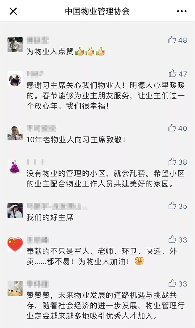 也许是因为物业人终于得到了人们的重视。“国家终于开始关注我们物业人了!总书记亲自慰问!这是物业人及物业服务业的又一次转折!”一位物业人在上述文章后台留言中写到。