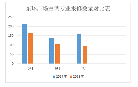 下表是东环广场2017年和2018年空调专业的报修数量对比: