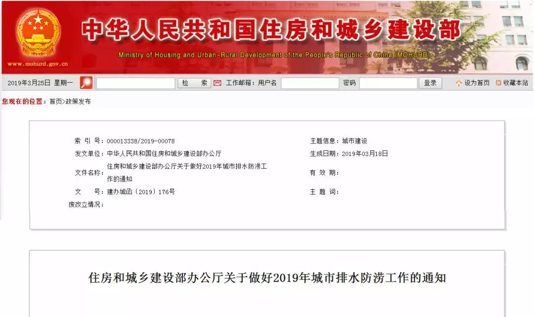 为全面贯彻落实《国务院办公厅关于做好城市排水防涝设施建设工作的通知》和国务院有关部署要求,住房和城乡建设部办公厅日前印发通知要求,强化排水防涝安全责任制度,切实落实城市人民政府主体责任,做好城市排水防涝工作,确保2019年城市安全度汛。