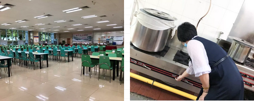 食堂于7点20分准时供餐,我会在开餐前,检查一遍出品、餐具摆放及餐厅环境是否达标,只有舒适的环境才能让客户更愉悦用餐。