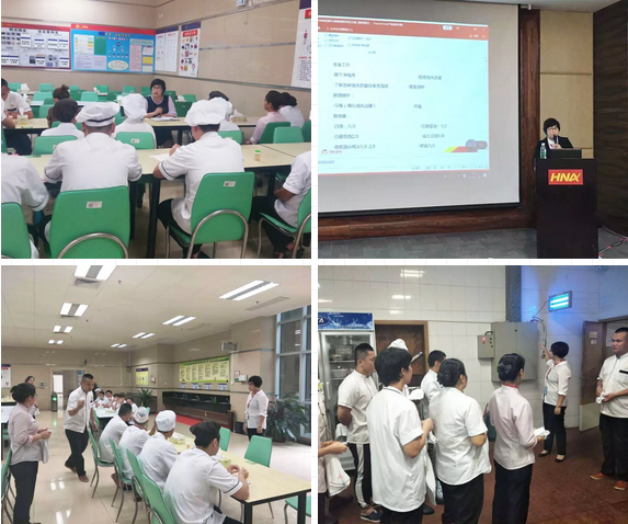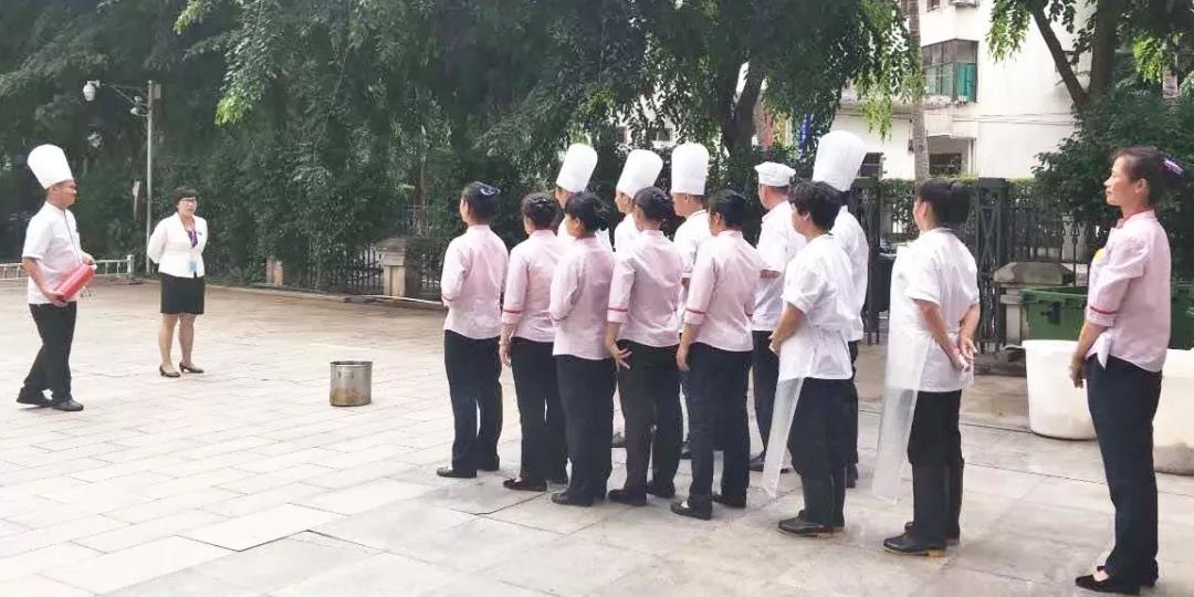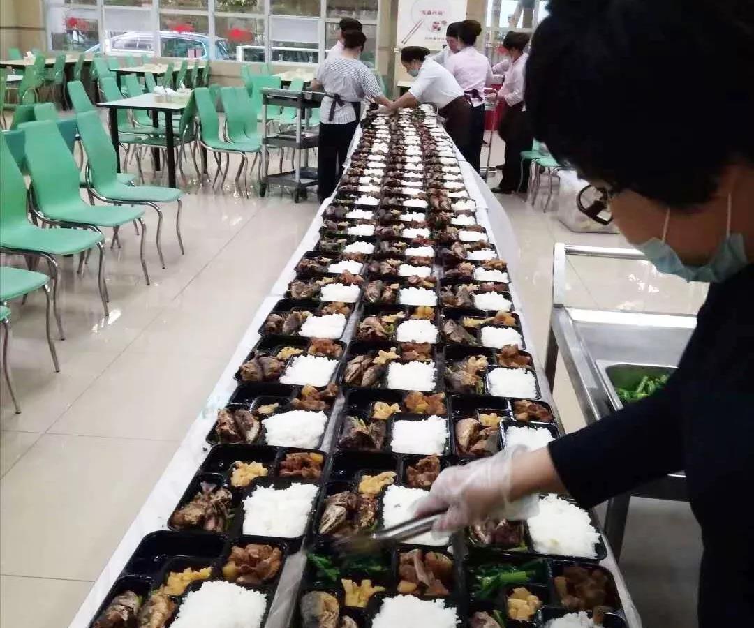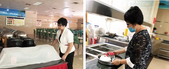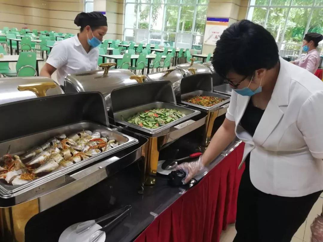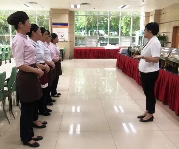 在开餐期间,后厨厨师在开餐前15分钟完成手头工作,全部到餐厅协助服务组,保障食堂开餐。传菜盯菜、补充菜品、上菜分菜、总结记录,每一个环节都不容马虎。