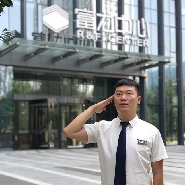 作为一名军人,其职责是守护中国人民,为人民服务。在退伍后,他选择富力物业,继续保障人民的生命财产安全。他说:“就冲着秩序员的工作性质和军人有点相似,我就加入了!”