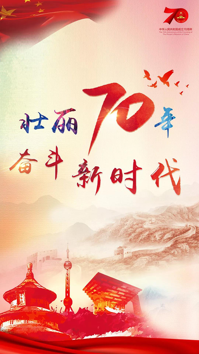 “庆祝中华人民共和国成立70周年”纪念章使用铜胎镀金材质,通径为50毫米,主要元素为五星、“70”飘带、团锦结、如意祥云和光芒,主色调为红色和金色。核心部分为五星,代表国家荣誉。“70”飘带象征中华人民共和国70年奋斗历程。团锦结环绕在五星和“70”飘带周围,寓意全国各族人民大团结,构建人类命运共同体的愿景。章体外环以如意祥云、光芒构成,象征人民对美好生活的向往,同时表达隆重庆祝中华人民共和国生日,礼赞国家富强、民族振兴、人民幸福的辉煌成就,以及在70年辉煌奋斗成就的基础上不忘初心、继续前进的坚定决心。