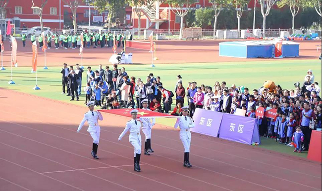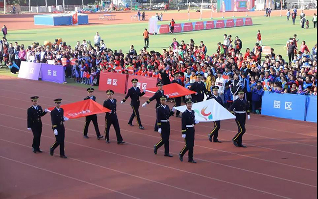 伴随着千余人唱响的国歌,正弘运动会会旗、正弘置业和正弘物业司旗、各旗帜方队、裁判员方队依次入场,整齐划一的步伐,热情洋溢的笑脸,精神抖擞的风貌,展现正弘物业人对祖国的敬意,及对业主的热情。